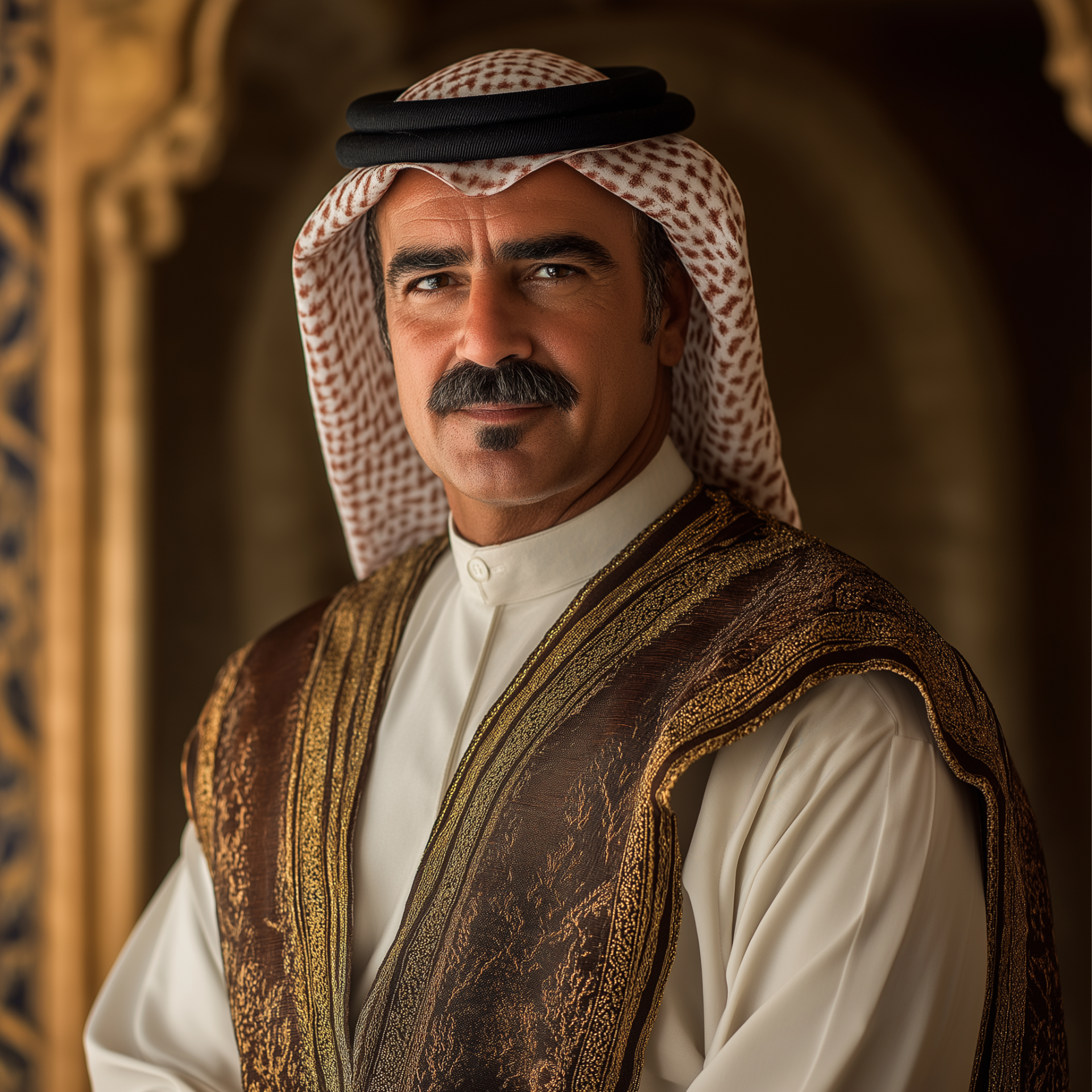 This image captures a dignified individual, exuding an air of regality and poise. The subject's expression and attire convey a sense of authority and grace.