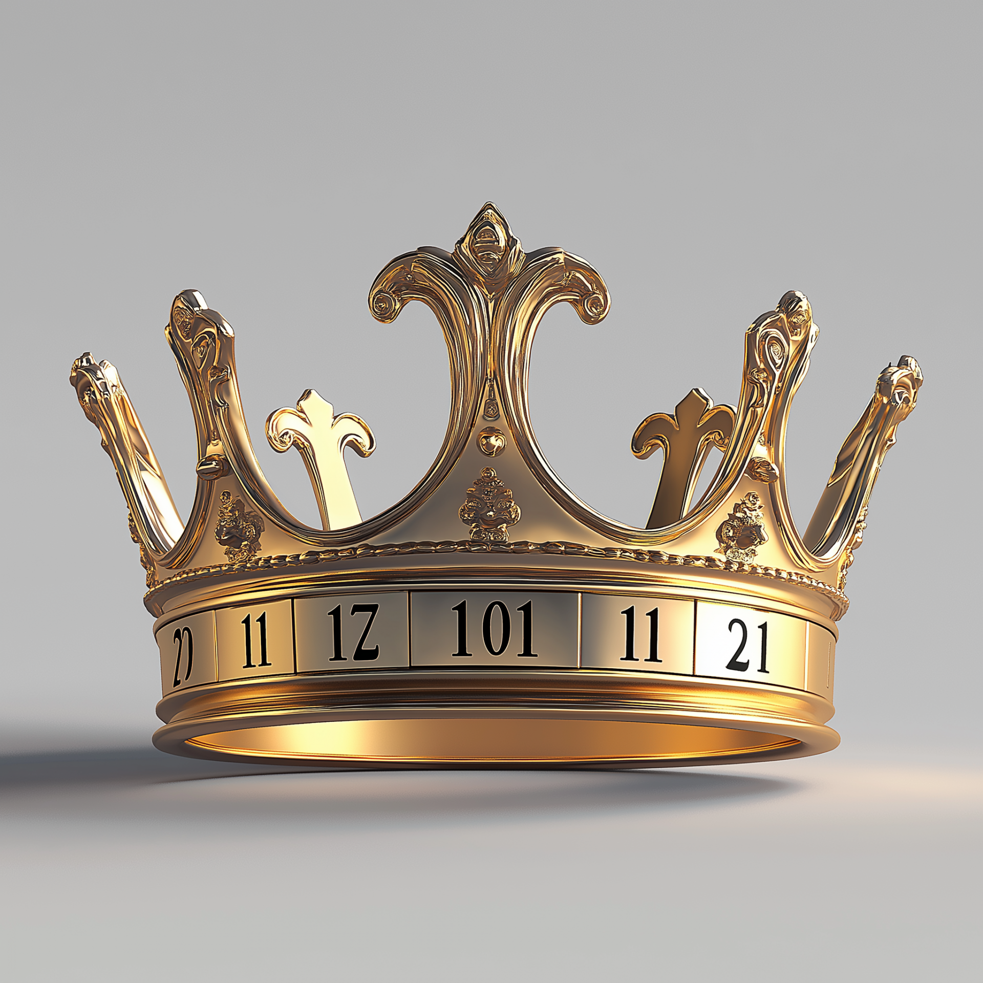 This image depicts a regal crown set against an isometric backdrop, offering a unique top view perspective. In the center of the crown, a calendar rests prominently, blending elements of royalty and time management.