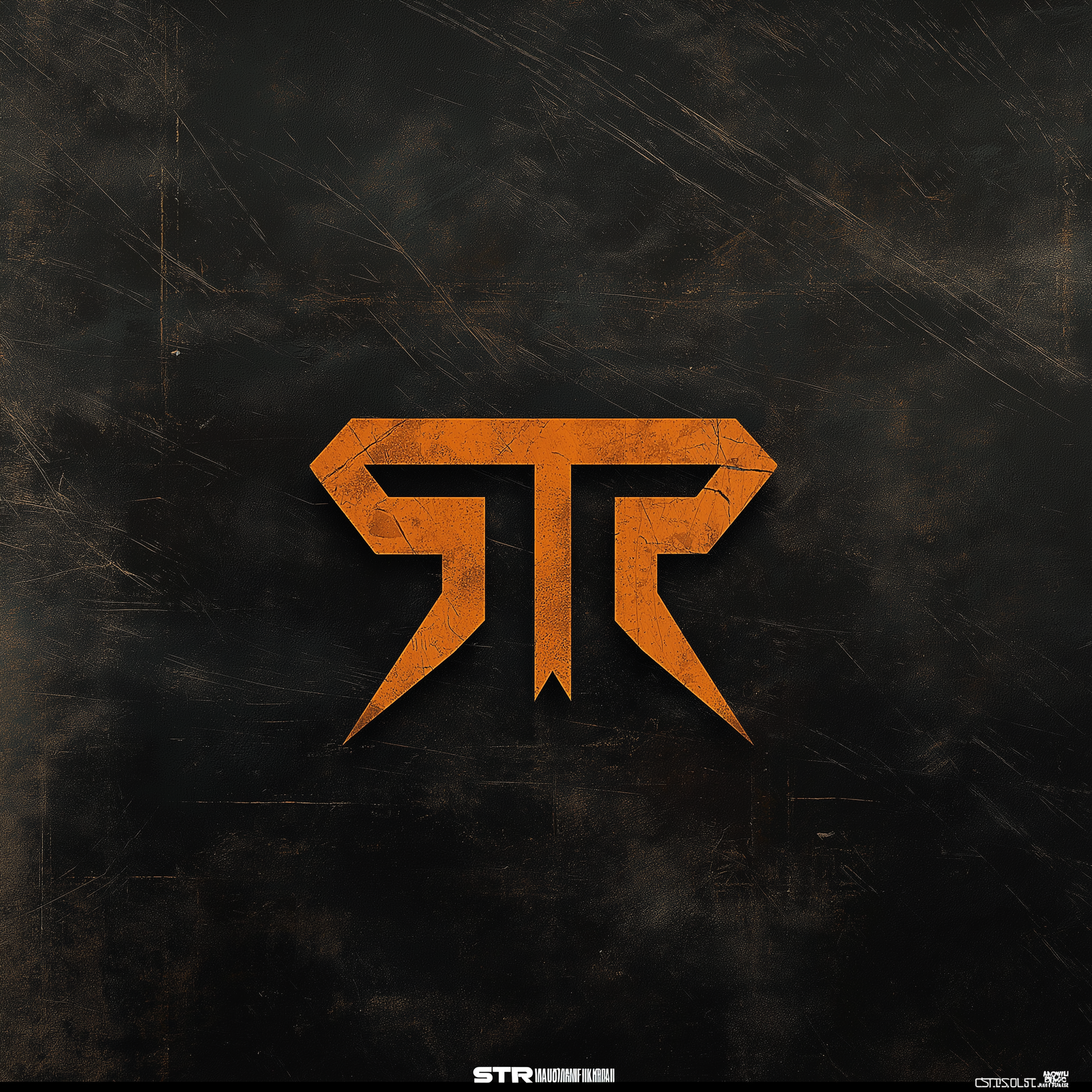 A logo design featuring the letters 'STR' merged together in a rugged and strong style. The overall look exudes toughness and durability.