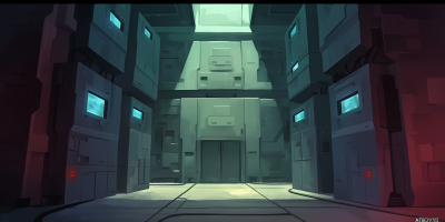 Symmetrical pixel art icon of a black cat head with yellow eyes, using simple shapes. The design is in the style of vector illustration and features a colorful patterned background with neon zigzags, reminiscent of a Sou Fujimoto architectural style.