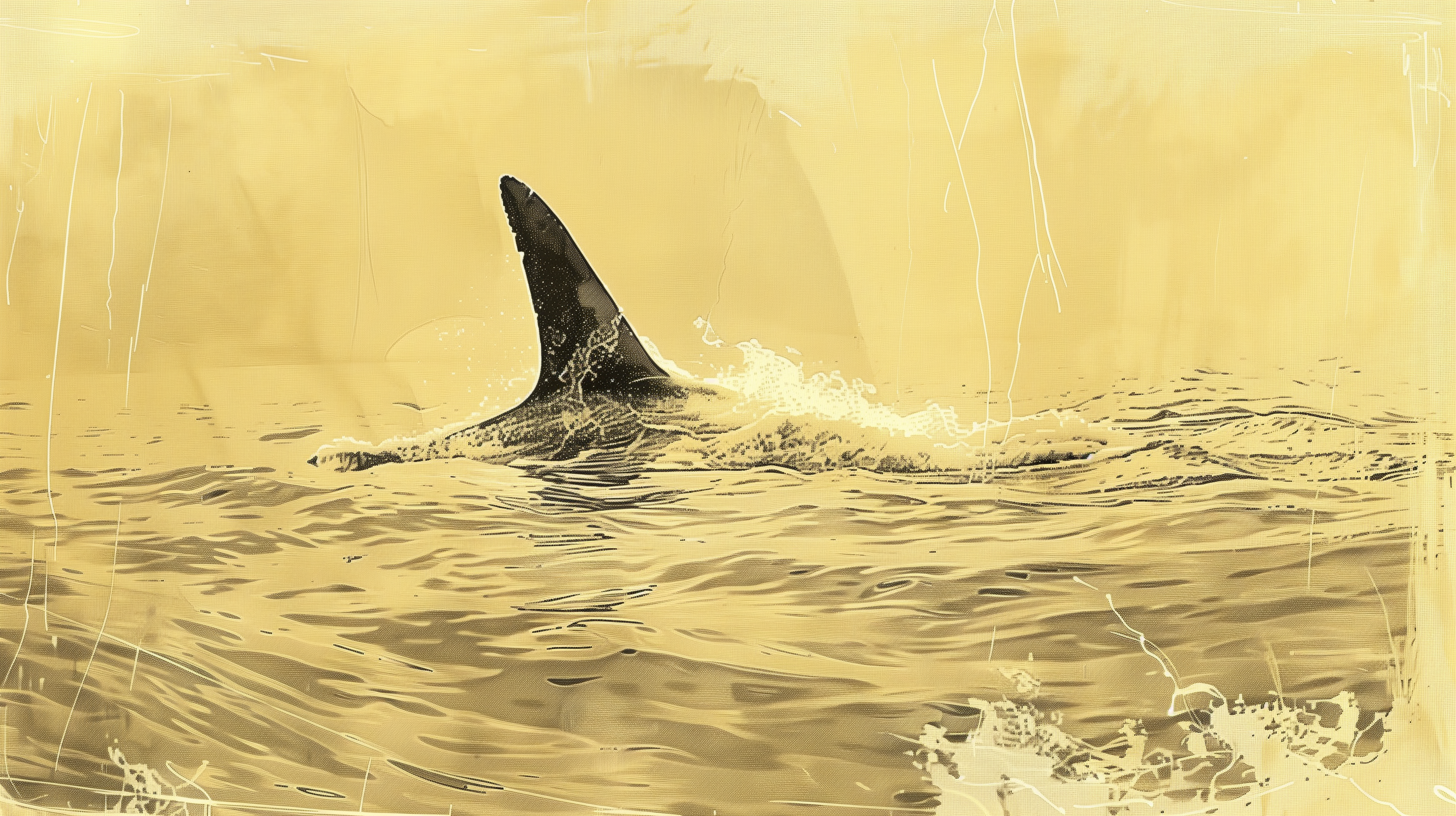 The image showcases a realistic sketch rendered in sepia tones, capturing the essence of a fin protruding from the water's surface. Its delicate lines and shading evoke a sense of tranquility and deep curiosity about the unseen world beneath the waves.
