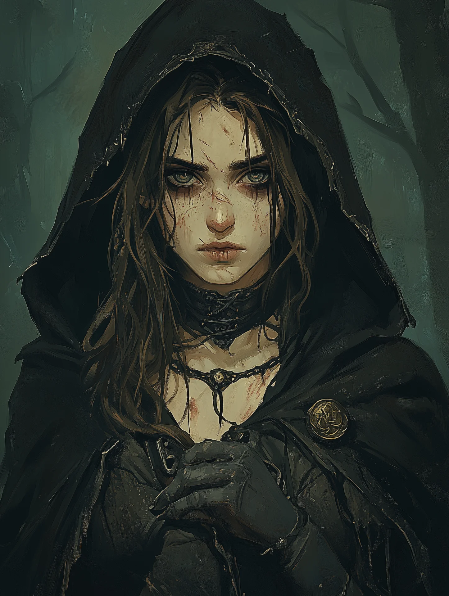 A mysterious atmosphere surrounds the figure in the dark green cloak as he gazes into the mirror, revealing only his absence. The decaying walls and the presence of a lone monarch butterfly add to the eerie, haunting ambiance of the dimly lit space.