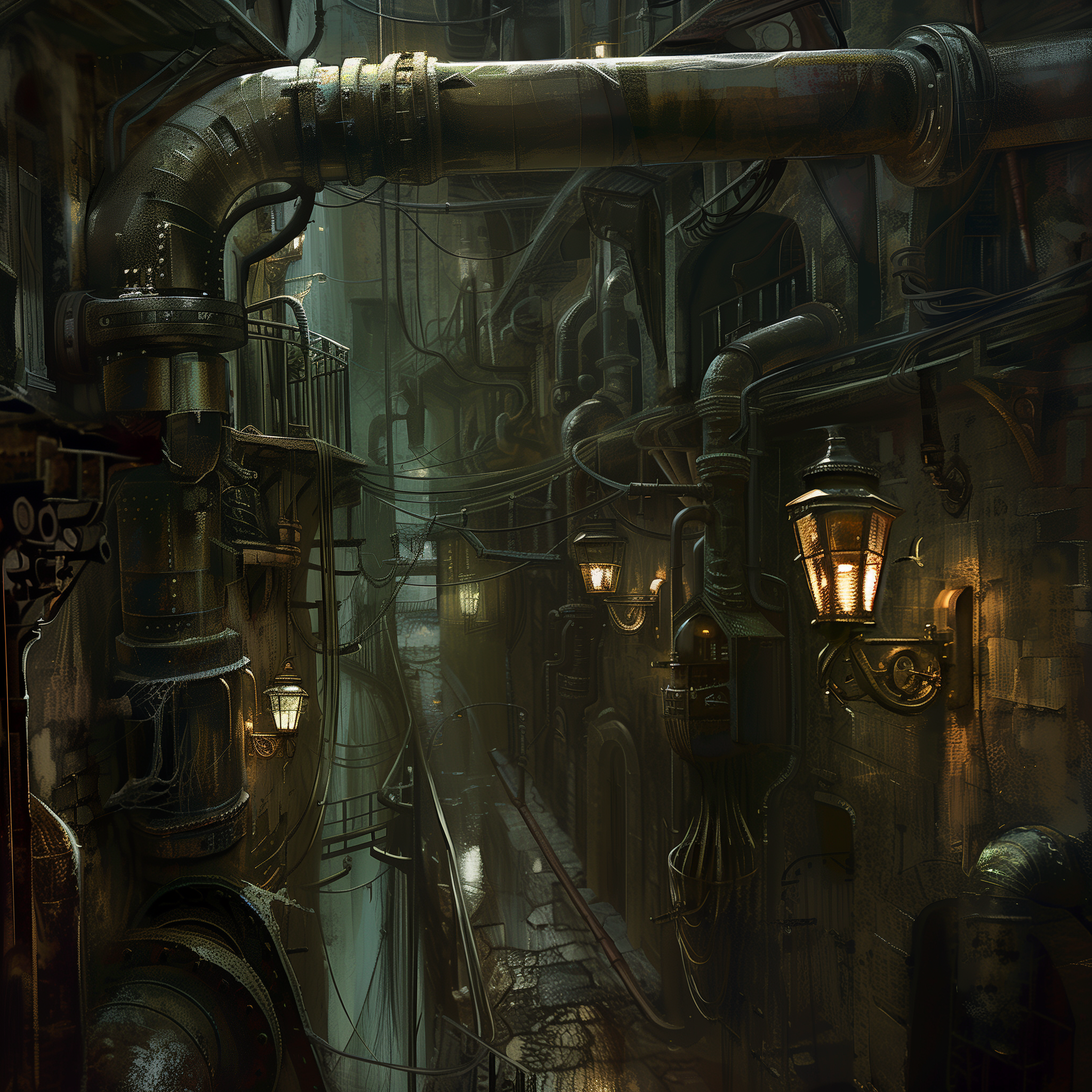 A moody and mysterious image of a dark underground gas with dim lighting creating eerie shadows. The atmosphere is tense and ominous, evoking a sense of danger and unknown forces lurking in the depths.