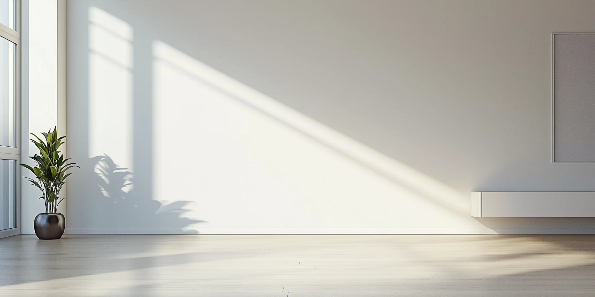 The image showcases a simple yet inviting living room with light wood floors and white walls. The neutral beige tones create a calm and serene atmosphere, perfect for relaxation.
