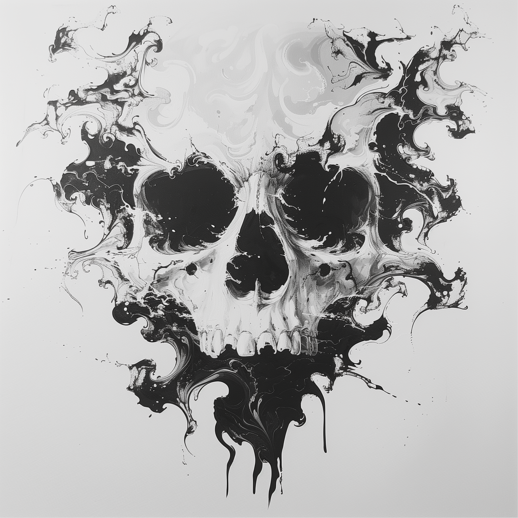 This design features a striking black and white symmetrical skull that evokes a sense of horror. The high contrast adds depth and intensity to the overall look, creating a captivating visual experience.