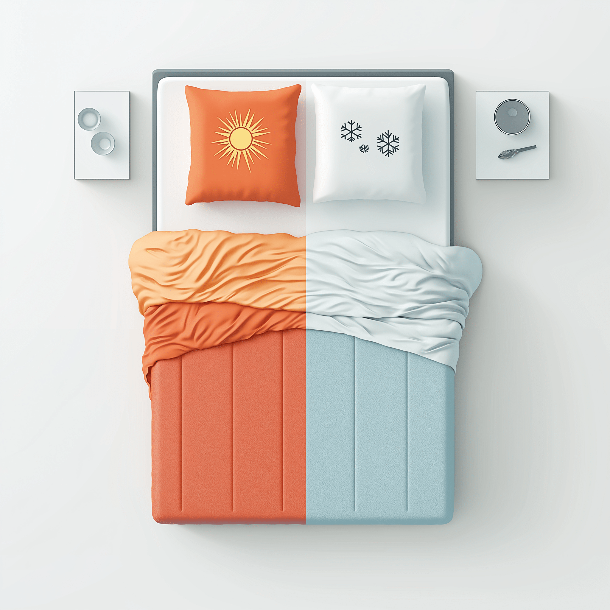 This infographic features a clean and minimalistic design showcasing the relationship between thermoregulation and sleep. The use of simple shapes and limited color palette creates a calm and easy-to-understand visual representation of the topic.