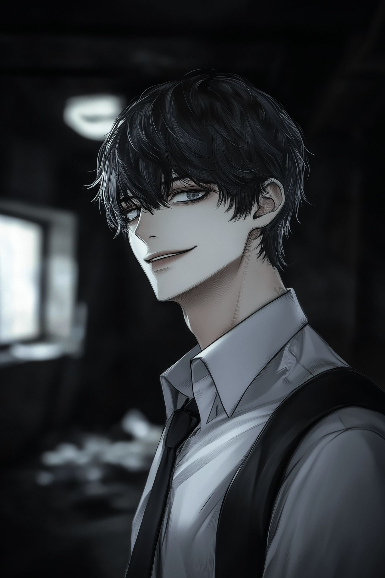 The image portrays a man with a radiant smile set against a backdrop of a devastated environment. The cinematic lighting enhances the contrasting emotions of hope and despair in this apocalyptic landscape.