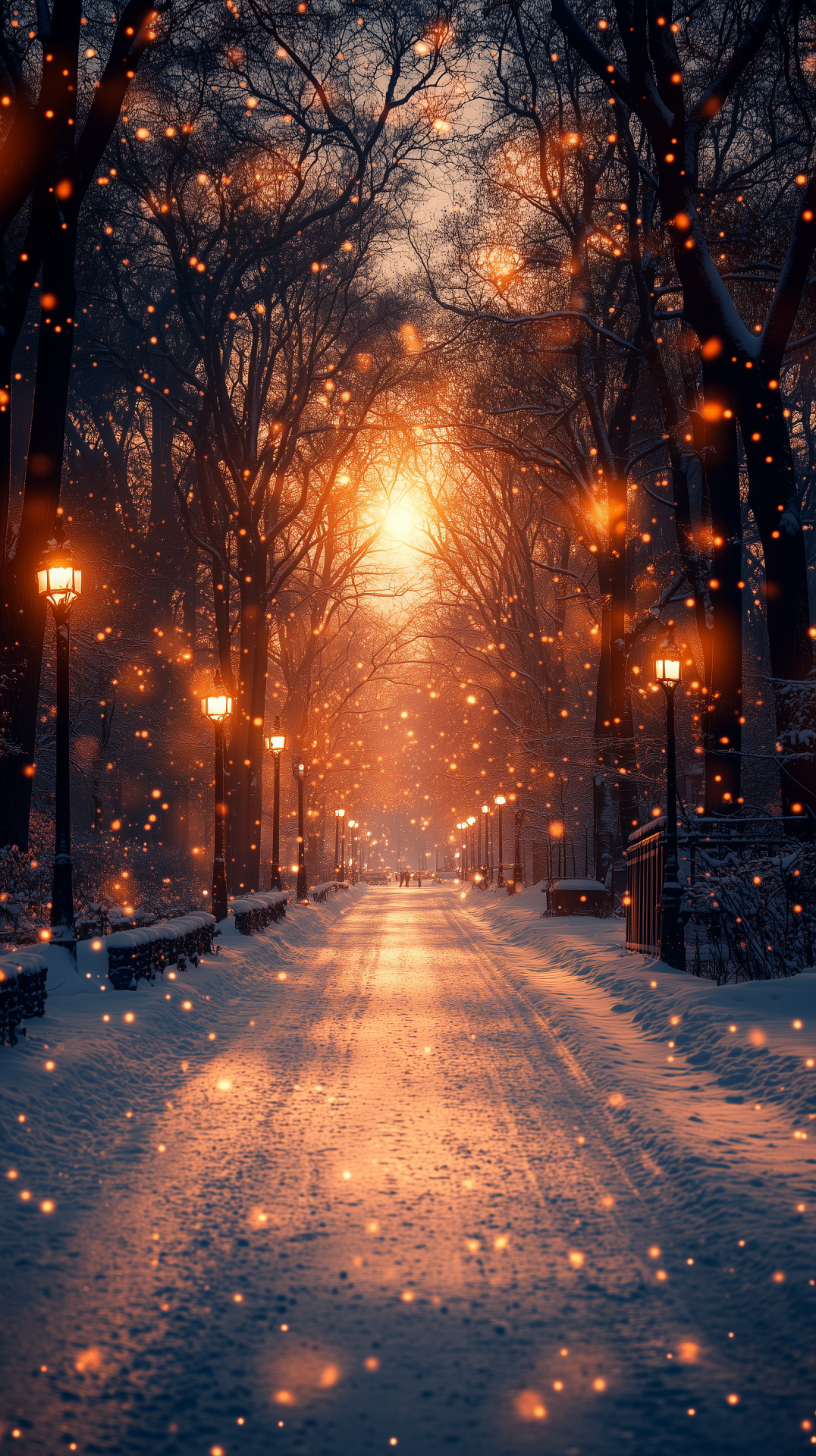 This stunning photograph showcases Central Park blanketed in a thick layer of snow, creating a serene winter wonderland. The image captures the soft light filtering through the trees, enhancing the peaceful ambiance of this iconic location.