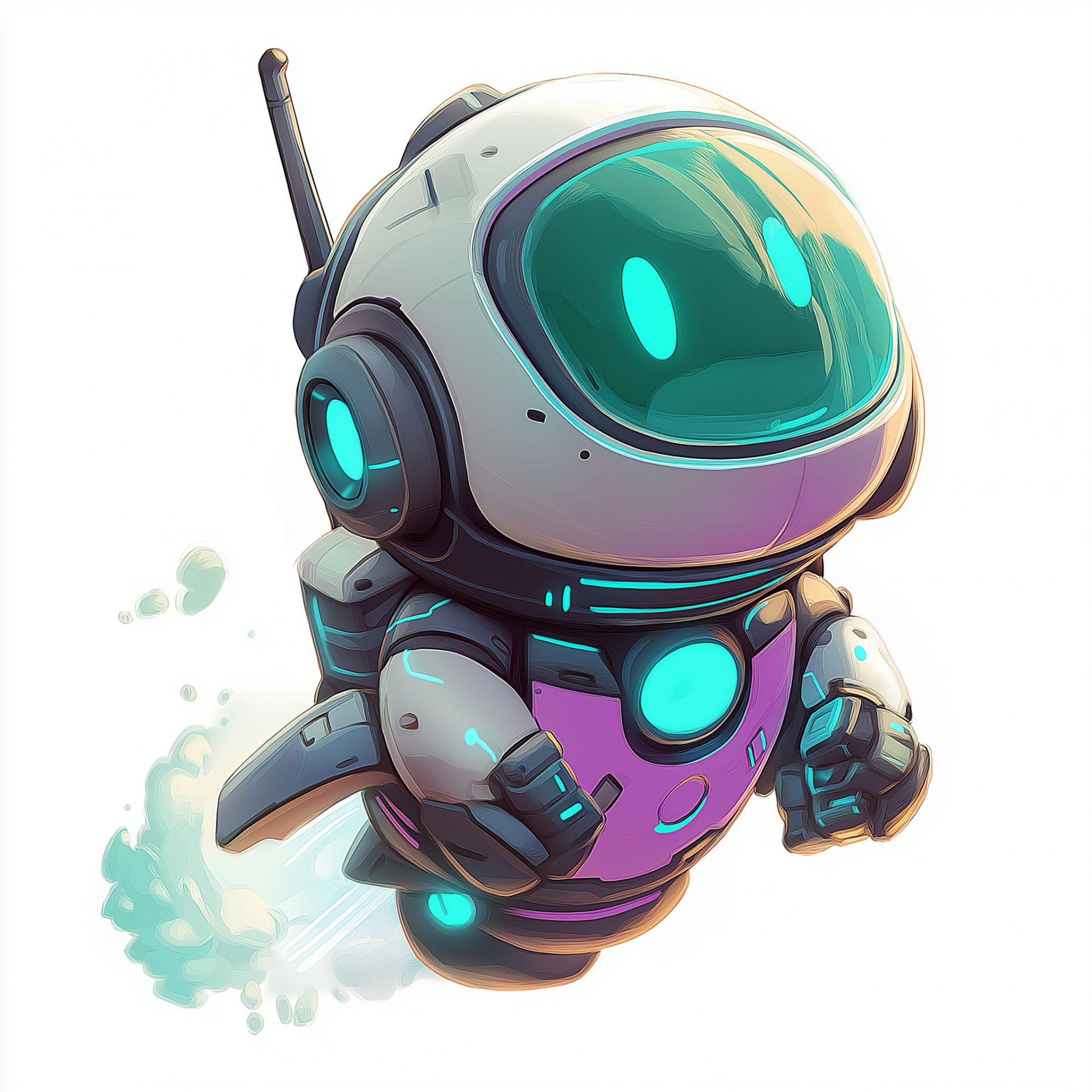 The illustration features a whimsical robot joyfully riding on a rocket ship, conveying a sense of adventure and fun. The clean white background enhances the colorful details of the robot and rocket, making the image vibrant and engaging.