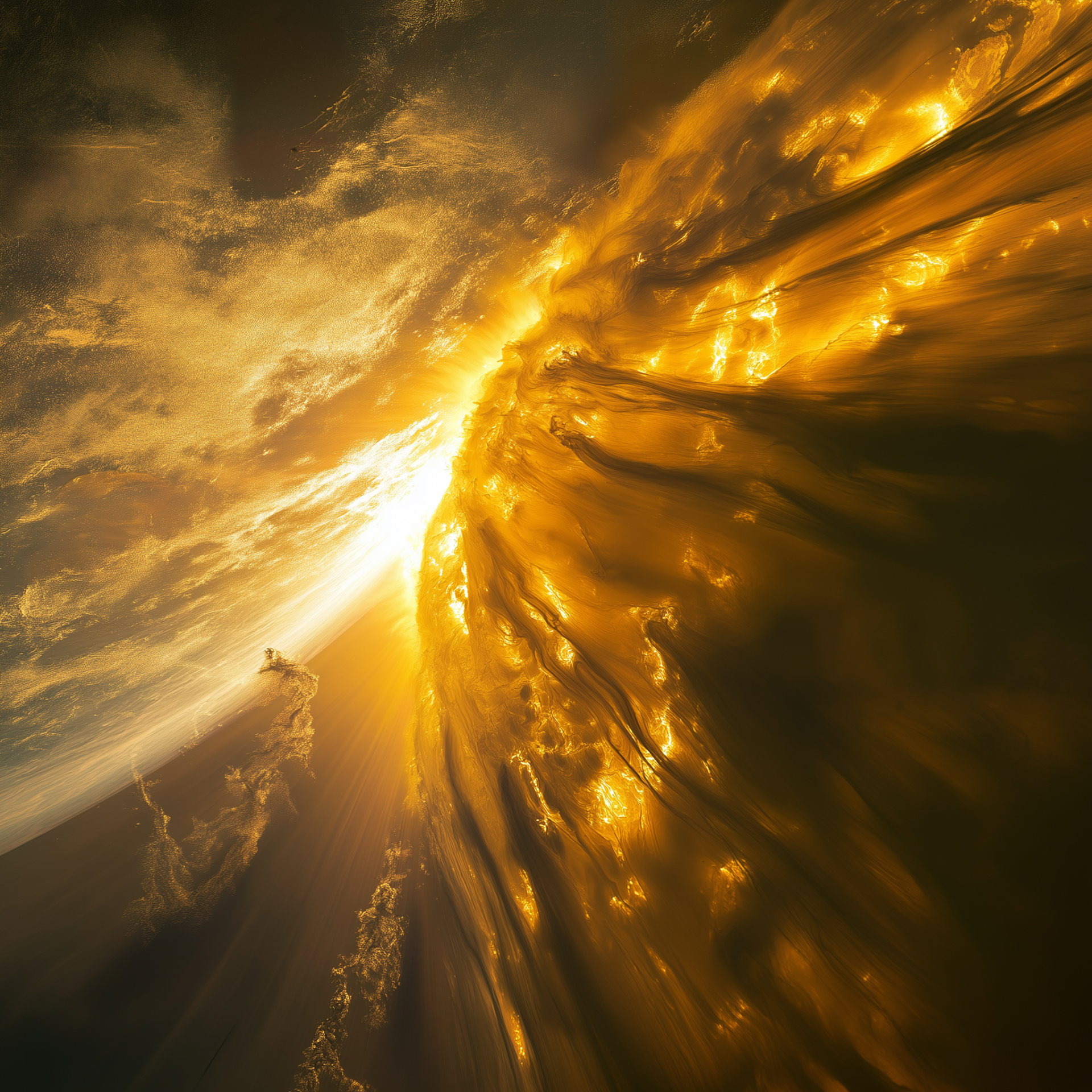 This image showcases a hyper-realistic depiction of the sun illuminating the Earth from space. The vibrant colors and intricate details create a stunning visual experience that evokes a sense of wonder and awe.