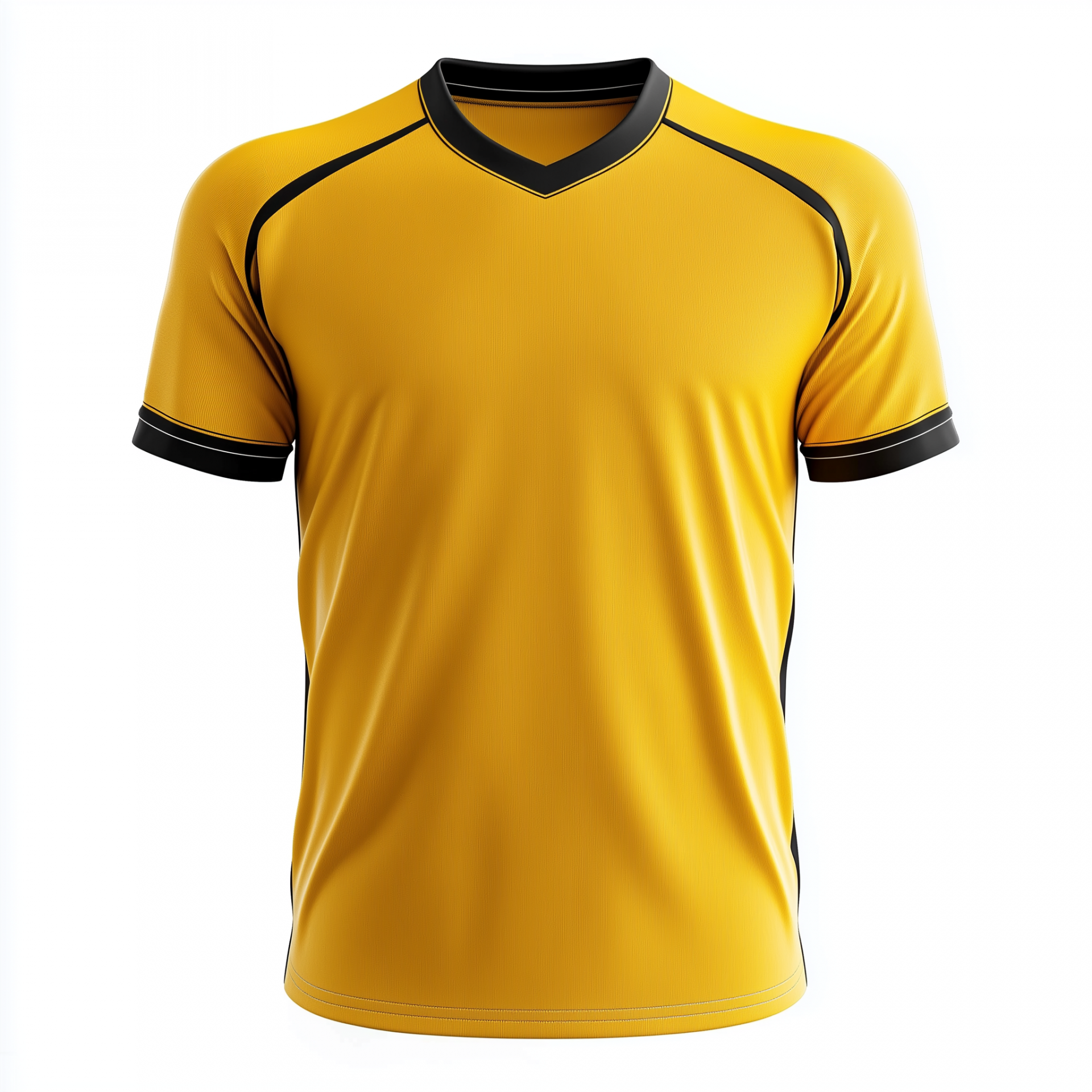 The image features a bright yellow sports football shirt displayed against a clean white background. The vibrant color and simple design create a striking contrast, emphasizing the shirt's sporty style.
