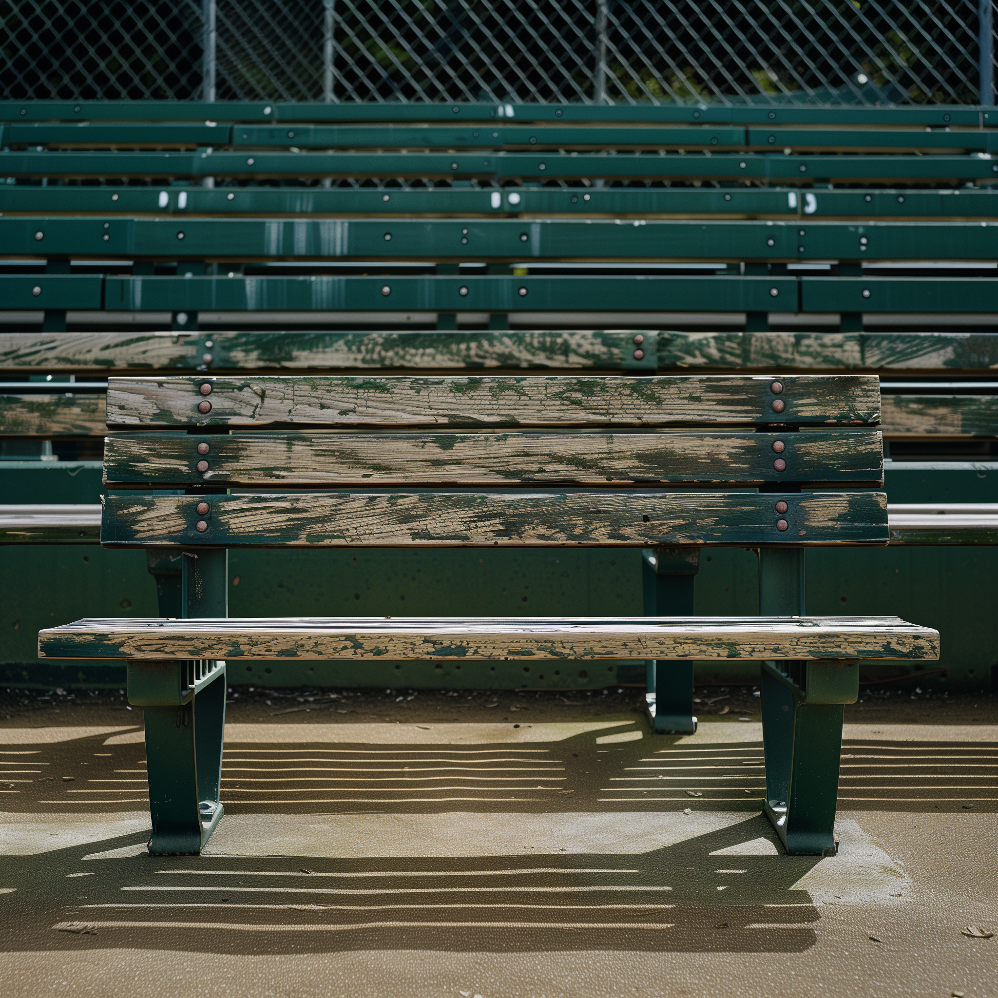 This ultra high quality photo captures the expansive view of bleachers in a ballpark, showcasing a hyper realistic representation. The image has a vibrant atmosphere that evokes the excitement and anticipation of a game day.