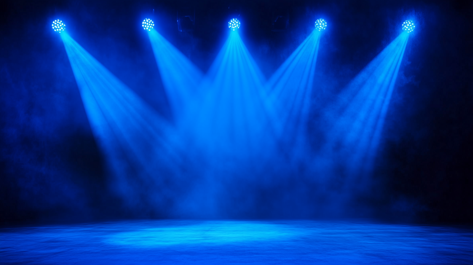 A vibrant and colorful background filled with dynamic lights that create a lively atmosphere. The arrangement of lights gives a sense of depth and excitement, reminiscent of a performance stage.