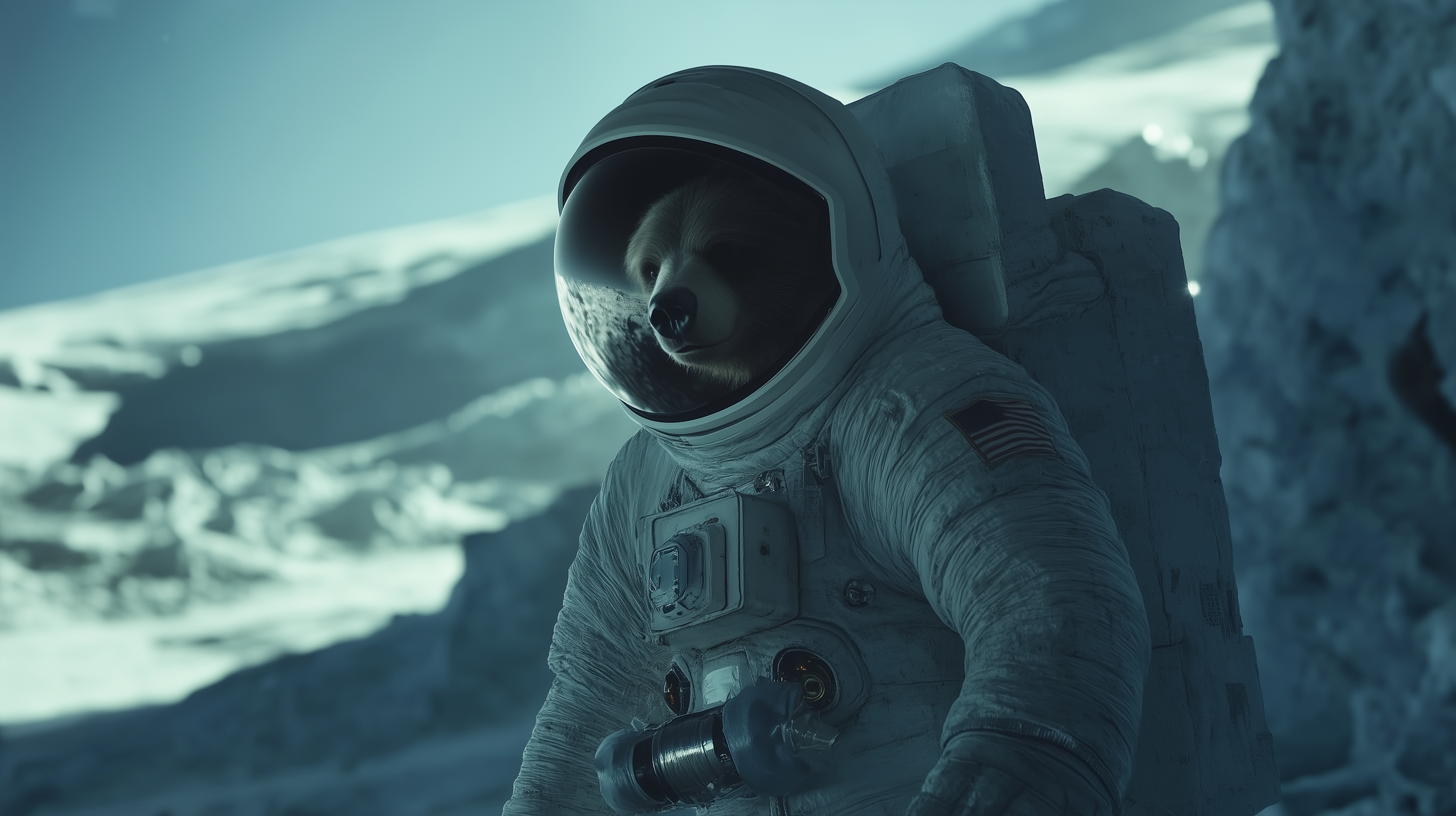 A cinematic image capturing a lone astronaut in a futuristic spacesuit navigating the desolate surface of the Moon, surrounded by vast lunar landscape.