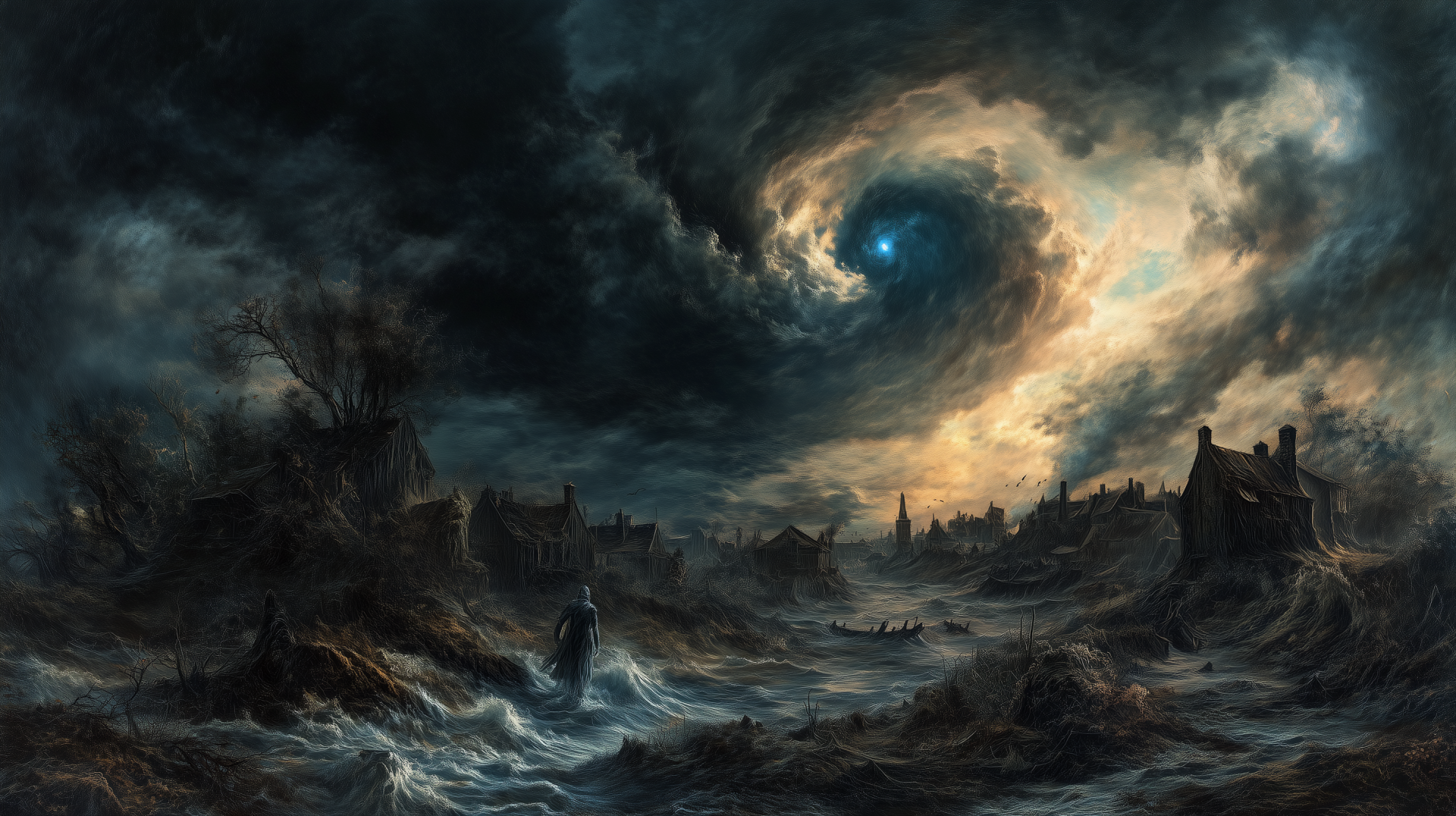 The image captures the raw power of nature as dark clouds gather ominously in the sky. Lightning strikes dramatically, illuminating the turbulent atmosphere and evoking a sense of awe.