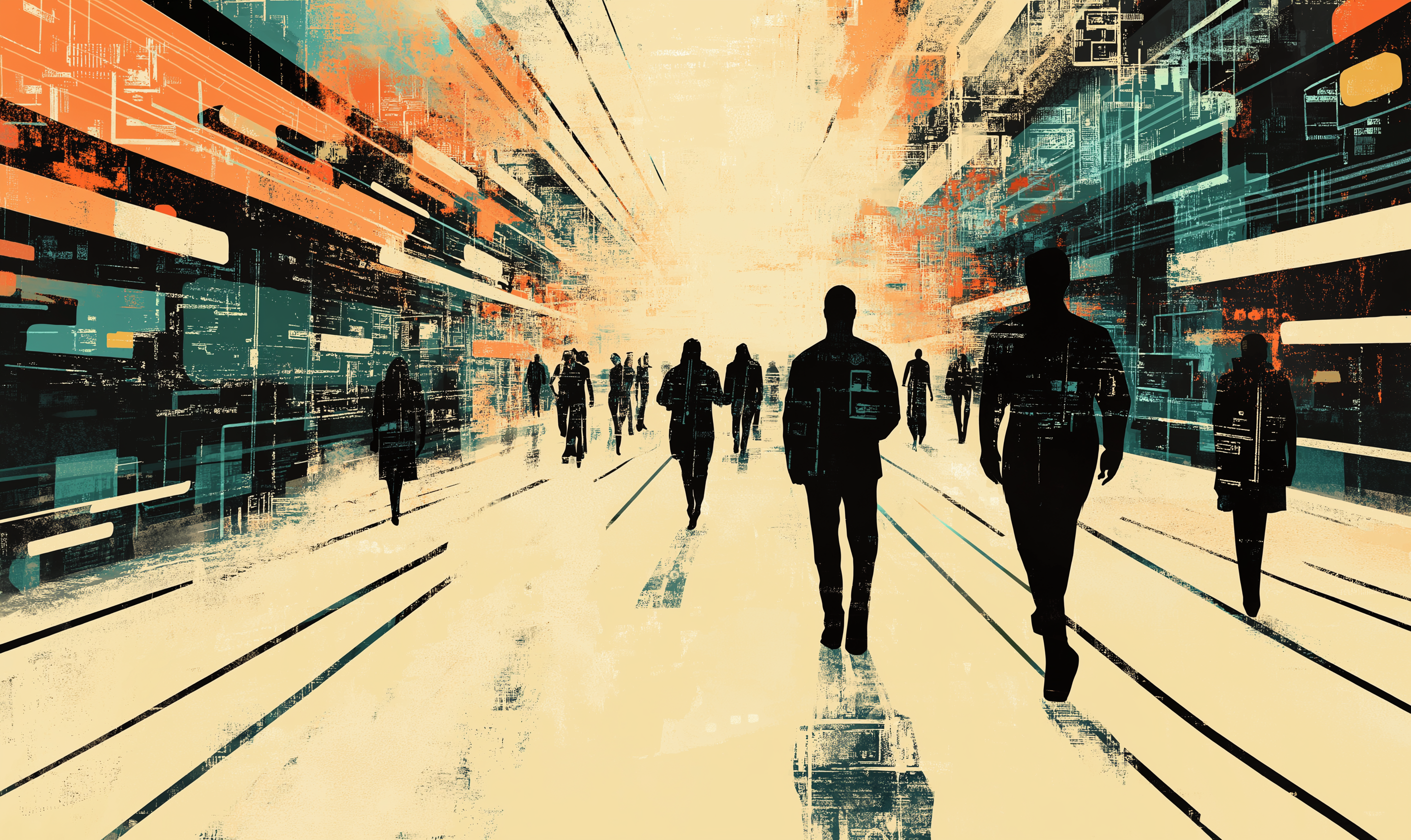 This artwork combines traditional kohokloma motifs with modern themes of cybersecurity. The illustration features black figures against a backdrop of light colors, representing protection and security in the tech world.