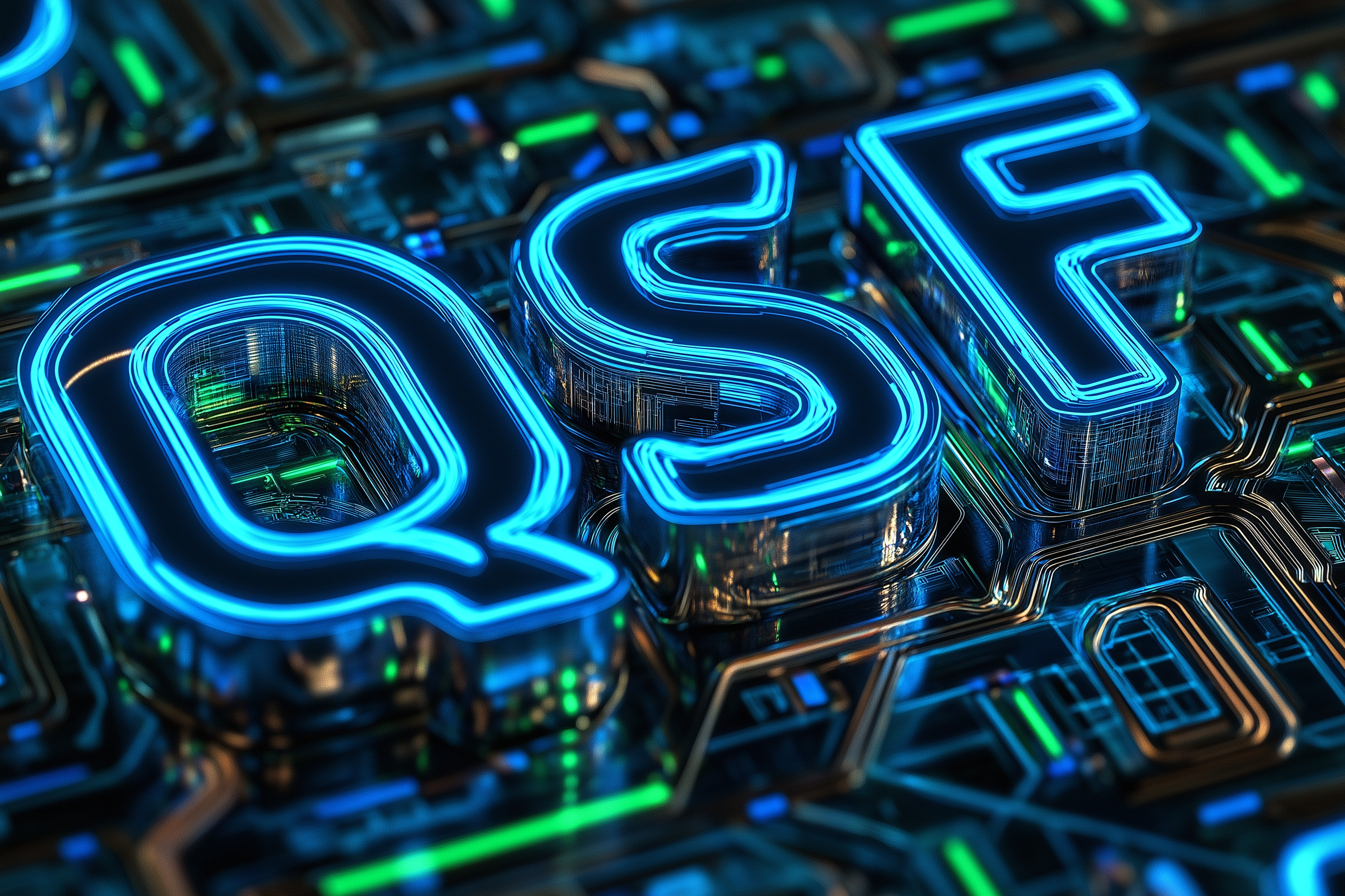 The image features a stylized technomap displaying the letters QSF in a vibrant blue, black, and green color scheme. The overall design has a modern and digital feel, providing a sense of technology and innovation.
