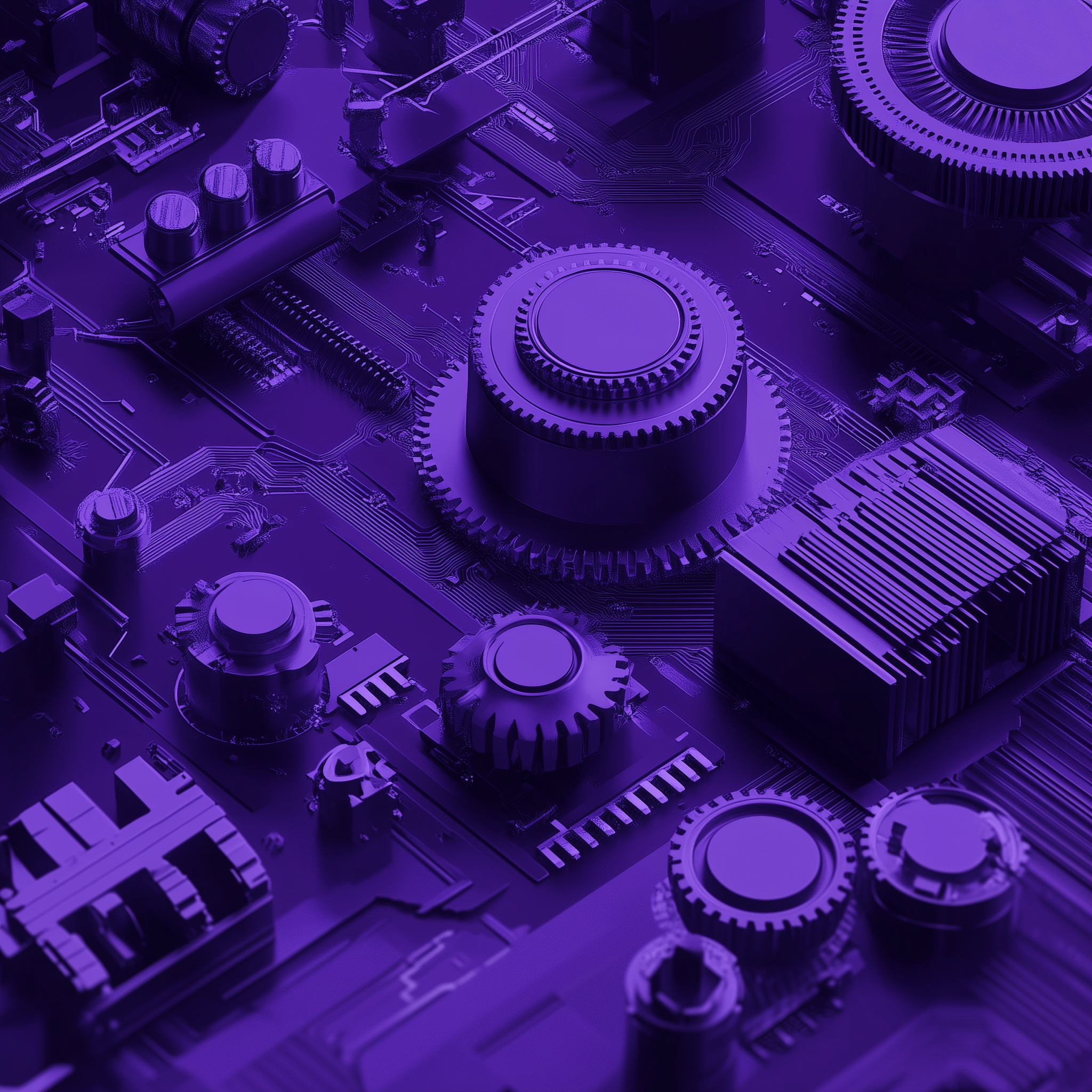 The image features a modern and sleek banner design with a purple color theme and complementary contrasting colors. The composition conveys innovation and professionalism, using abstract shapes and a minimalist style to represent technology.