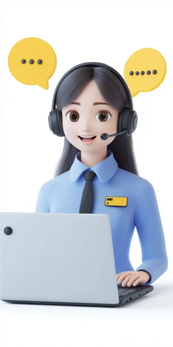 An innovative illustration showcasing a futuristic customer service environment with holographic blue technology, AI interfaces, and staff women wearing headsets. The scene exudes a blend of professionalism and advanced technological capabilities.