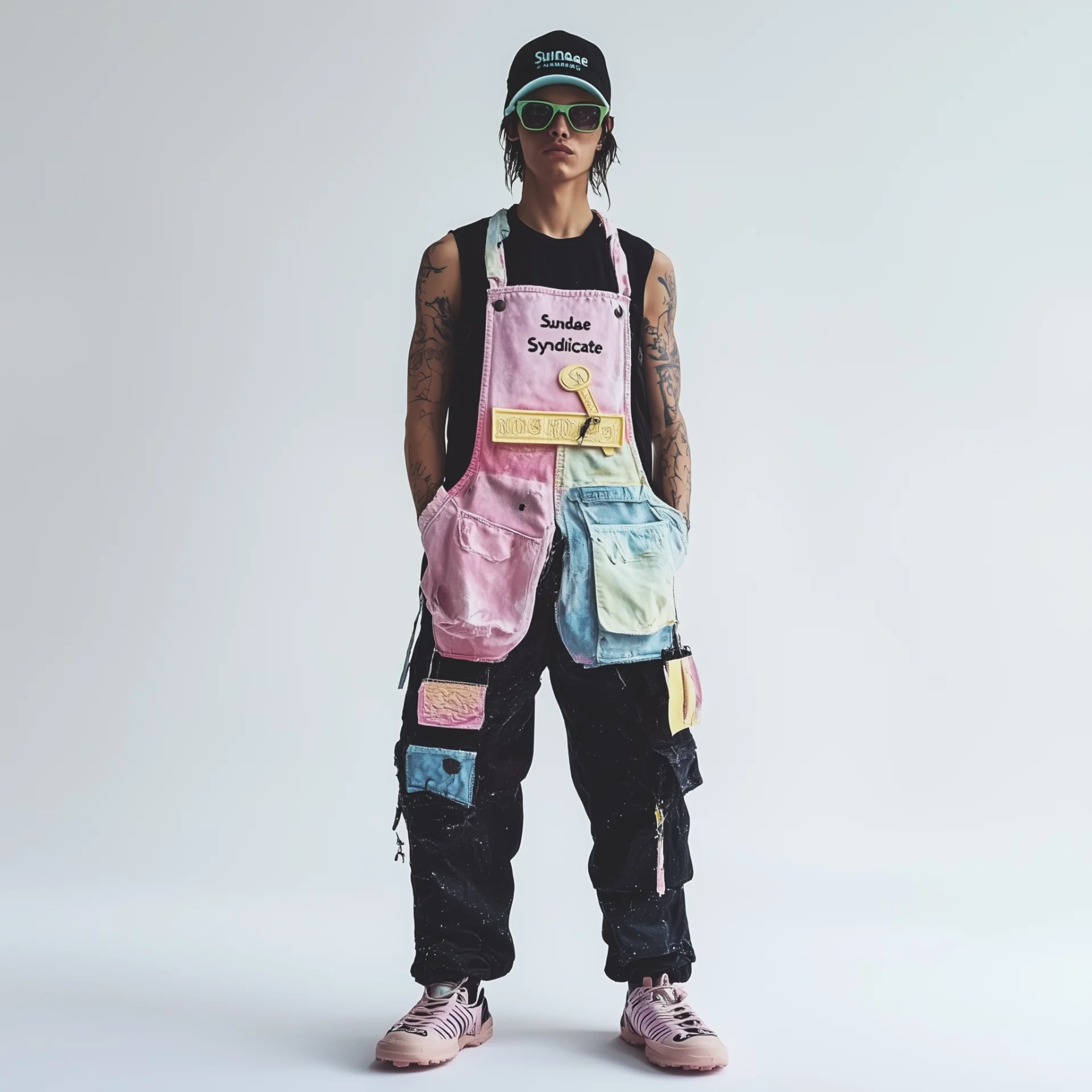 An exterior view of a futuristic high-tech fashion store with sleek white materials and orange lighting. The store showcases fitness clothing through glass panels, set in a modern street environment.