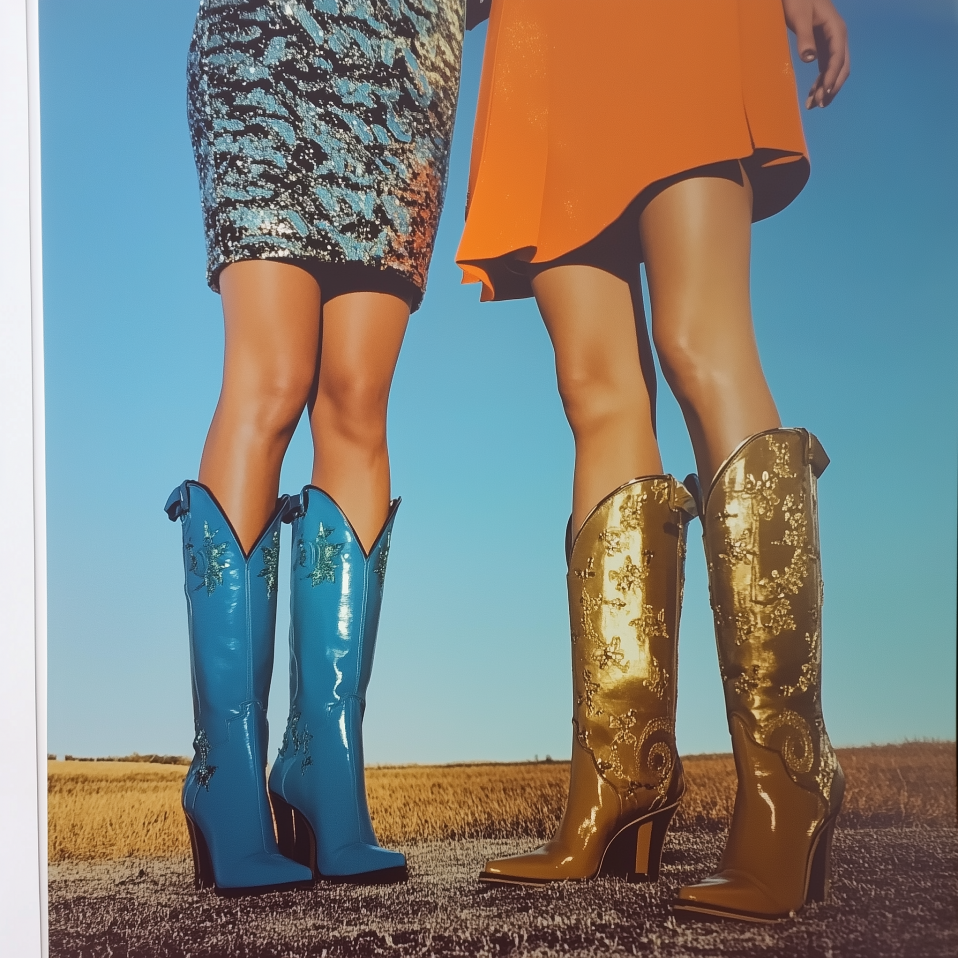 The image captures a serene morning at the Meguro River in Tokyo, showcasing vibrant colors of sunrise. Groups of people dressed in coordinated outfits stroll and cycle along the embankment, with the skyline of Tokyo in the background.