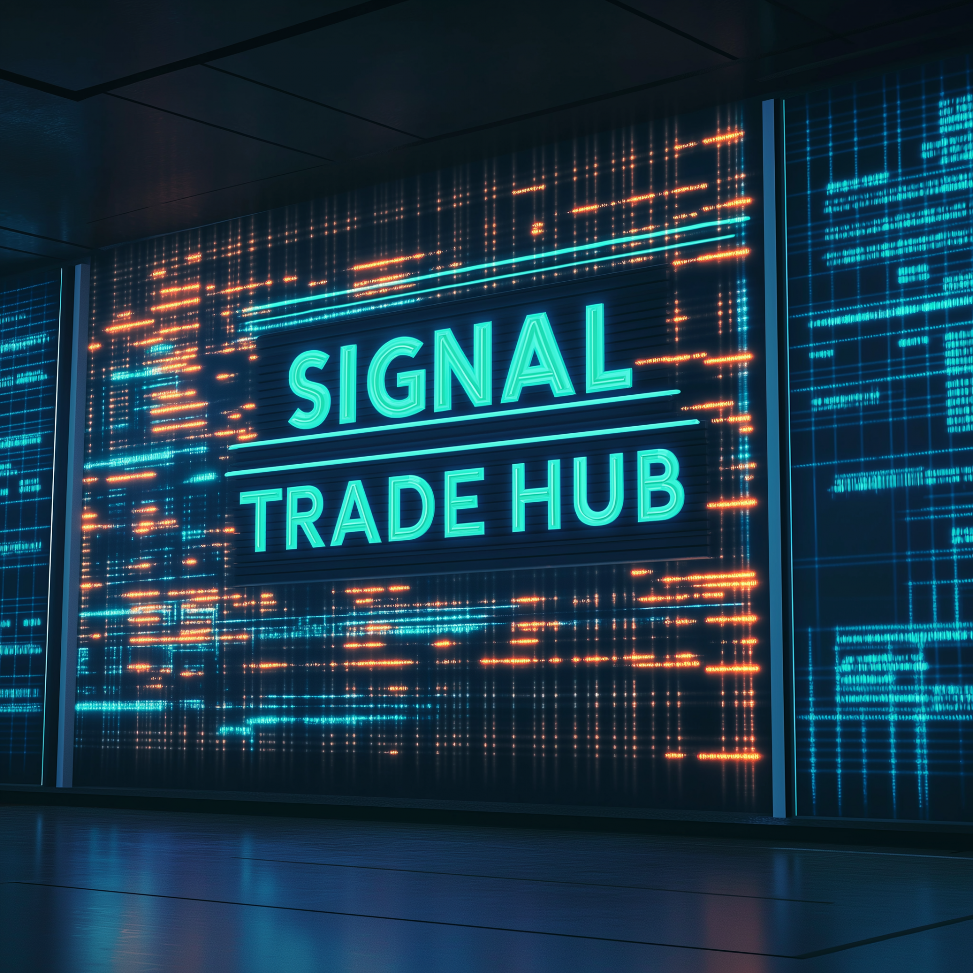 The image features 3D text saying 'SIGNAL TRADE HUB' with a Forex trading chart in the background. The overall style is dynamic and modern, conveying a sense of financial expertise and technology.