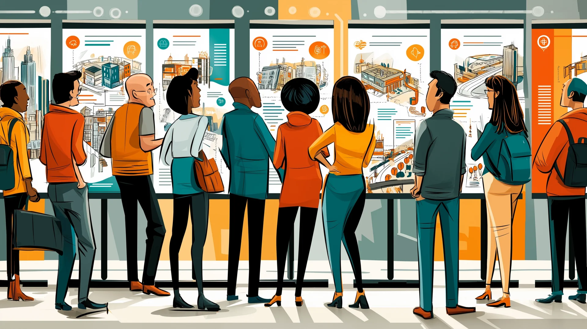 The image depicts two professionals engaged in a business meeting, exchanging ideas and documents. The atmosphere is focused and collaborative, reflecting a modern office environment with sleek furniture.