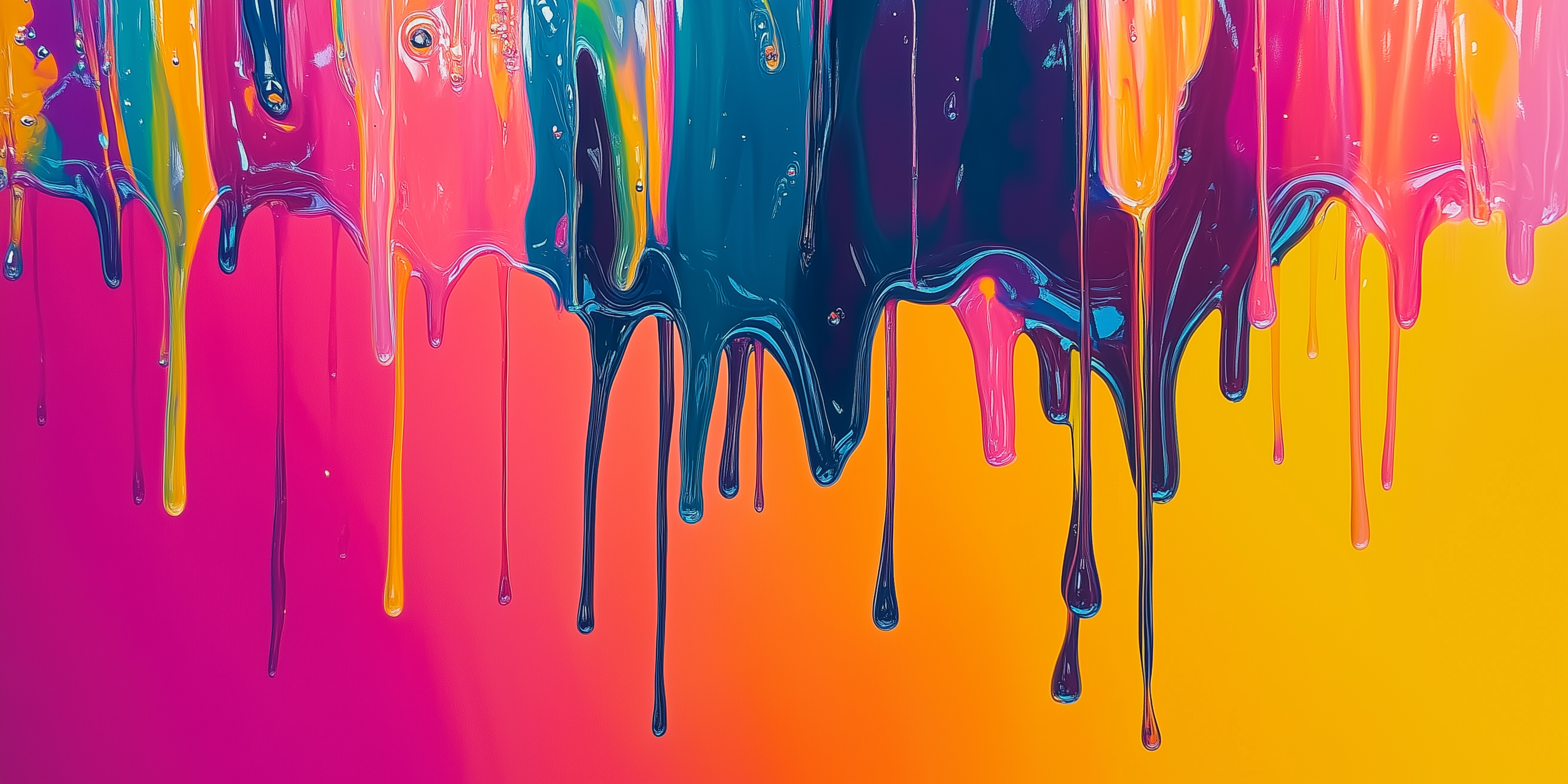 Vibrant and saturated waves of dripping liquid in various colors emanating from the center, creating a dynamic and eye-catching pattern. The negative space surrounding the liquid waves enhances the visual impact and highlights the intricate drips.