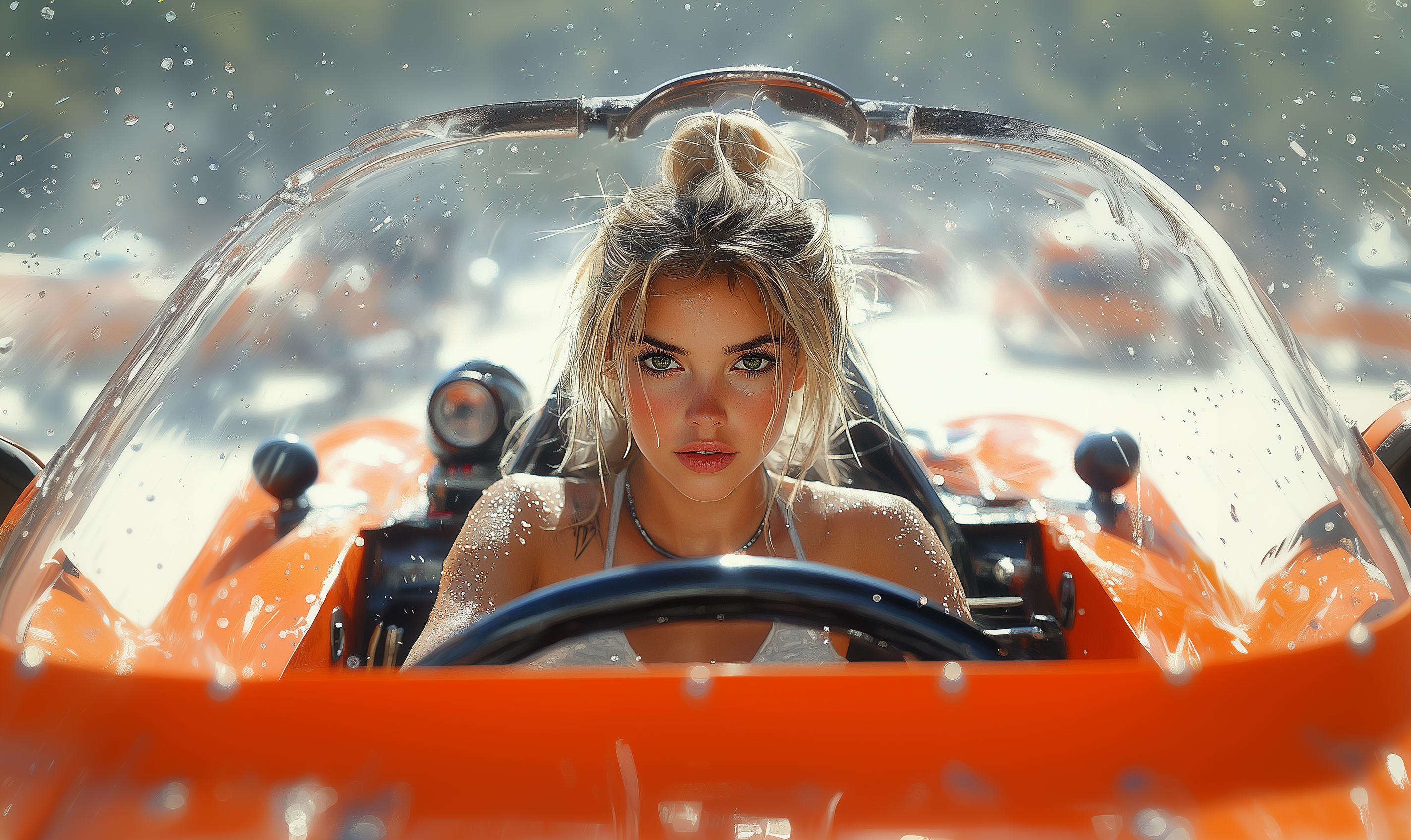 The image showcases a hyperrealistic watercolor painting characterized by intricate details and vibrant colors. Enki Bilal's style is evident, bringing a surreal feel to the beautiful figures intertwined in a captivating composition.