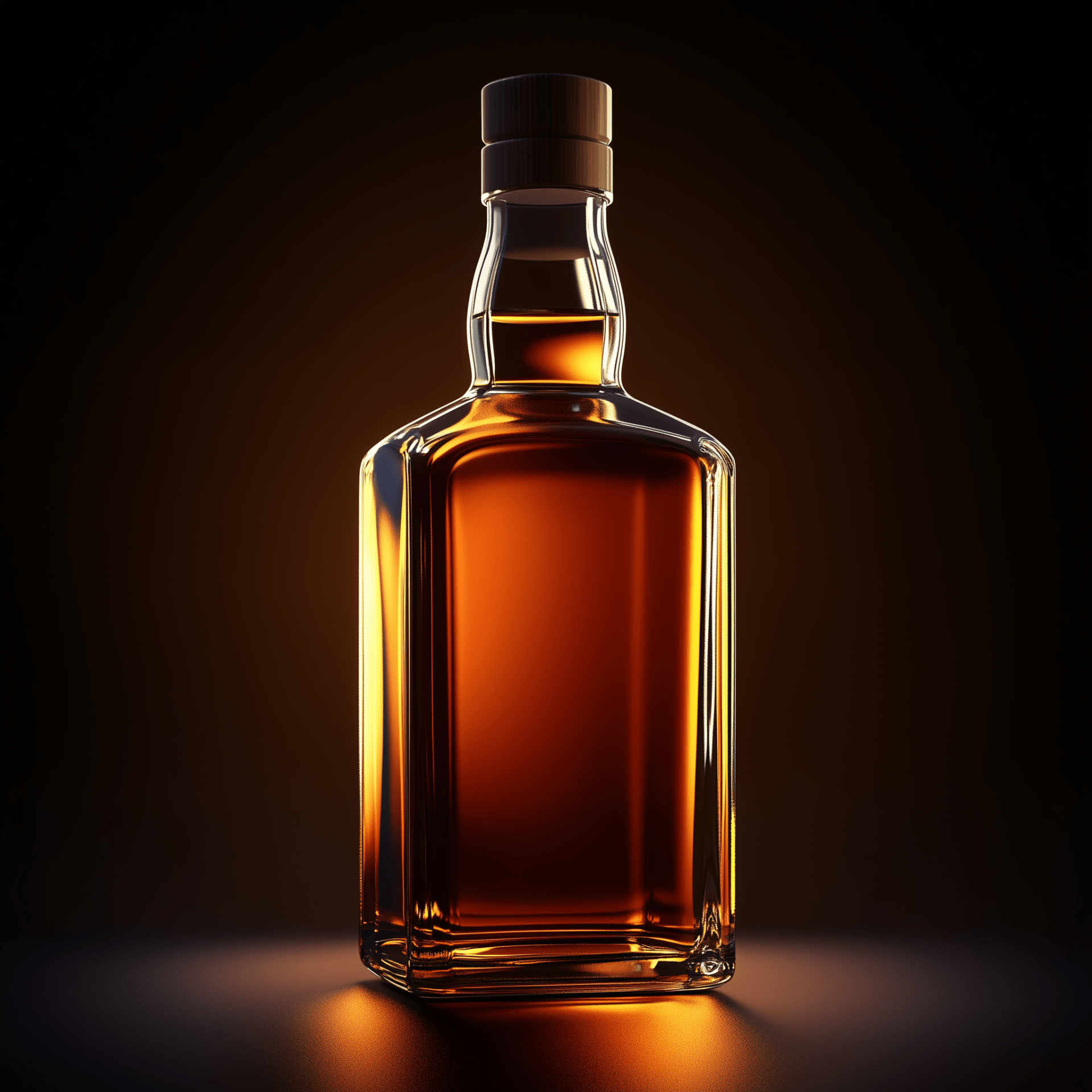 The image showcases a beautifully crafted 3D whisky bottle, rendered with stunning detail and set against a dark backdrop. The professional lighting accentuates the bottle's features, creating a dramatic and sophisticated atmosphere.