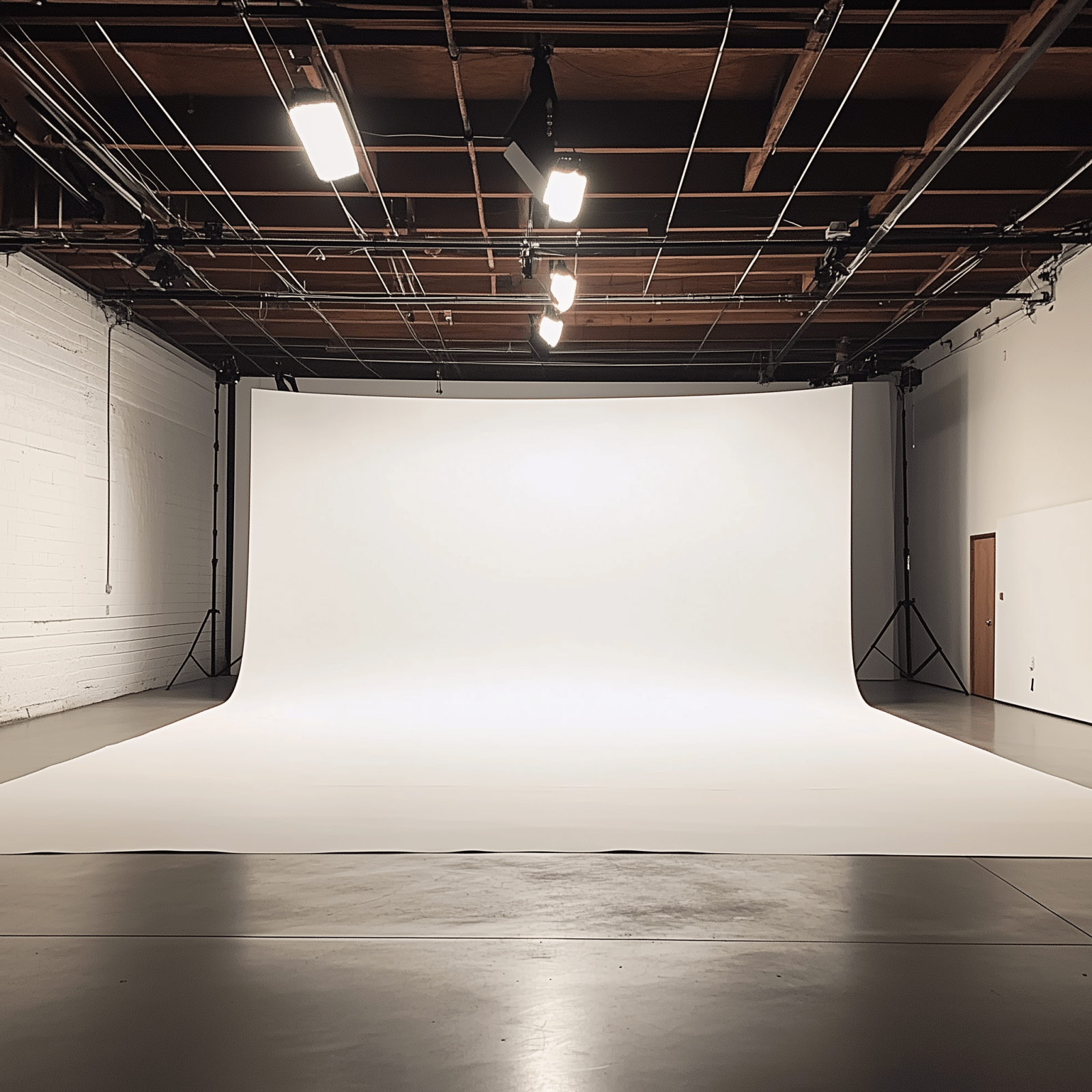 This image captures a low camera angle shot of a smooth white cyclorama backdrop. The simplicity and elegance of the design create a clean and spacious atmosphere.