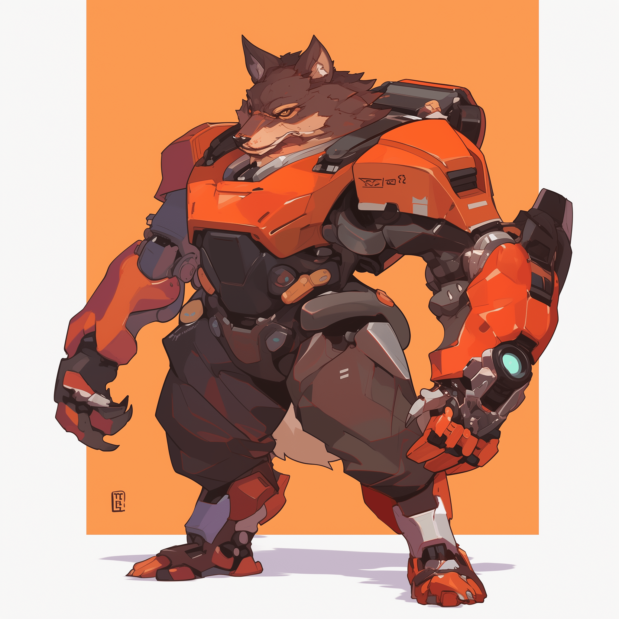 This illustration features a detailed character concept of a wolf against a clean white background. The design showcases artistic elements that highlight the wolf's features and personality.